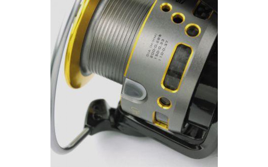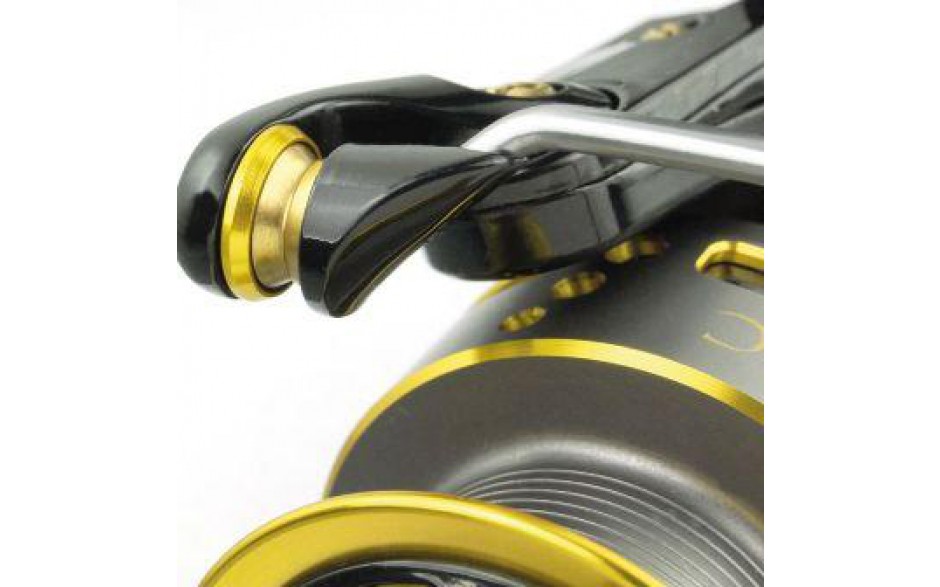 -9 Kugellager +1 Walzenlager -One-way Clutch unendliche Rücklaufsperre -Tuff body Aluminium Design -Schneckenrad Getriebe -Extra leichter, starker Bügel-Anti-Drall Schnurführungssystem -2 Aluminium Spulen -Ausbalancierter Rotor -Kurbel mit Kohlefaserarm -EVA Kurbelknopf -Runder Aluminium Schnurclip-Fein justierbares Multi-Disc Frontbremssystem -Spezial Schutzkappe vor den Bremsscheiben gegen Wasser, Sand und Schmutz